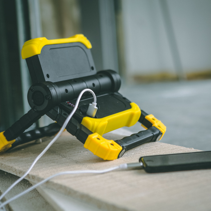 - FOARTE VERSATIL: Nelipsit din orice atelier, santier, sau chiar gospodarie. Asigura o iluminare puternica ~ 2x 1000 lm cu numai 2x 10W, si o durata de viata a bateriei de pâna la 5 ore, asigurând luminarea generoasa a spatiului de lucru;