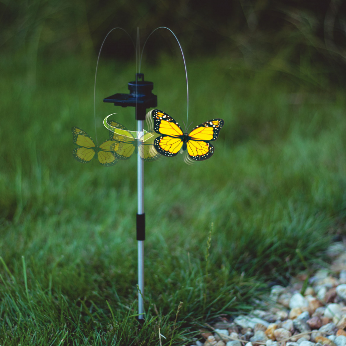 Acest fluture solar dansator este ideal pentru orice gradina, balcon, pat de flori sau terasa. Spre bucuria celor mici, chiar si o mica raza de soare misca fluturele. Produsul nu are baterie, asa ca fluturele prinde viata doar în timpul zilei când este expus la soare.