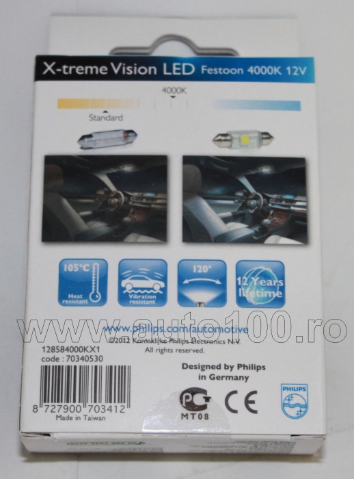 LED C5W 1W 4000K (lumina alba) Vision PHILIPS