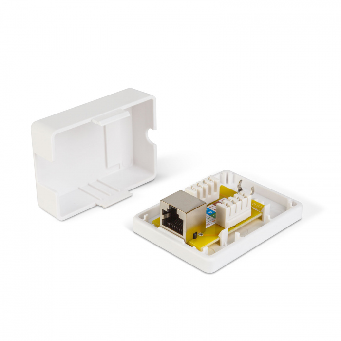 Priza simpla FTP CAT6 de montaj la suprafata (off-site design) – solutia rapida si profesionala pentru orice extensie de retea. Port RJ45 ecranat CAT6 cu contacte aurite pentru conexiune Gigabit stabila si protectie maxima împotriva interferentelor. Carcasa alba din plastic rezistent, montaj ultra-usor cu surub sau banda dublu adeziva (inclusa). Perfecta pentru conectarea unui PC, TV Smart, telefon IP, camera de supraveghere sau orice dispozitiv la reteaua FTP existenta – fara sa spargi peretii!
