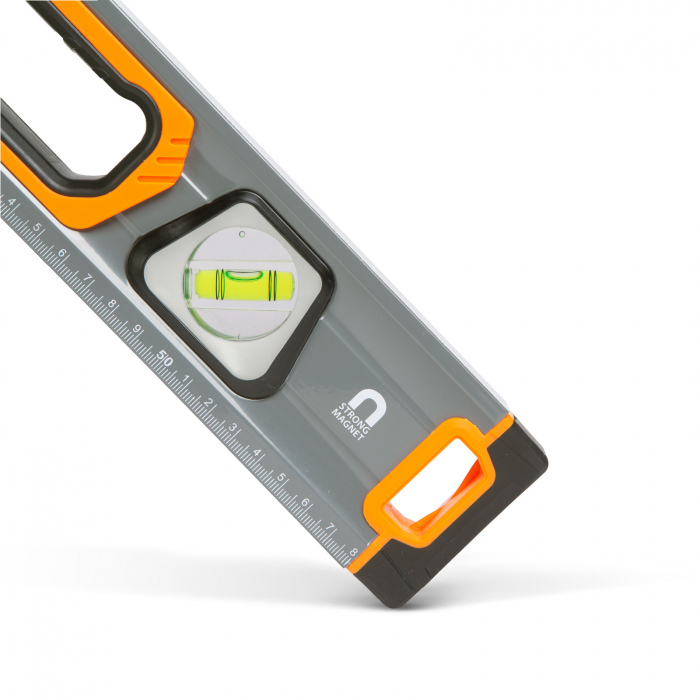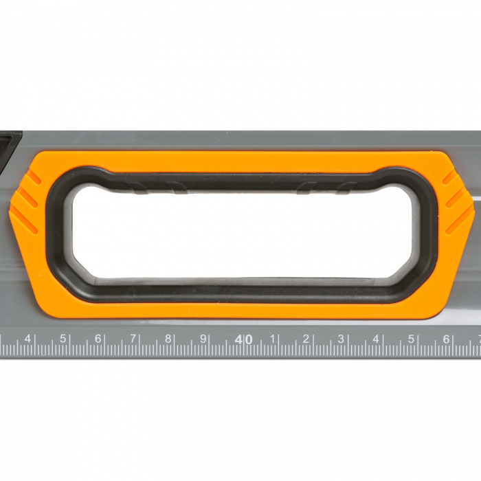 Rigla gradata pe toata lungimea instrumentului, care poate fi utila la diverse masuratori. doua buc. mânere cu interior cauciucat ajuta la o priza ferma în orice pozitie.