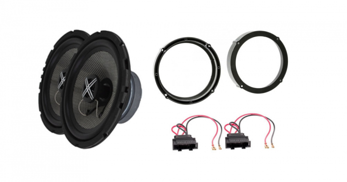Pachet audio difuzoare 16,5 cm cu inele si conectori, compatibil cu VW Touran