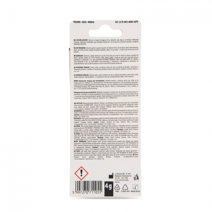 Reîmprospatati aerul din masina cu odorizantul Paloma Gold si bucurati-va de o calatorie placuta la fiecare kilometru!