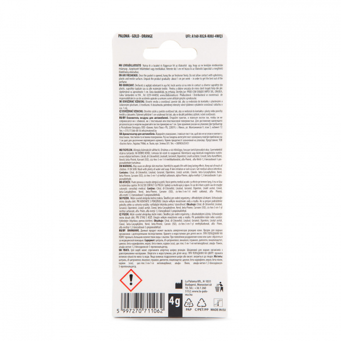 Reîmprospatati aerul din masina cu odorizantul Paloma Gold si bucurati-va de o calatorie placuta la fiecare kilometru!