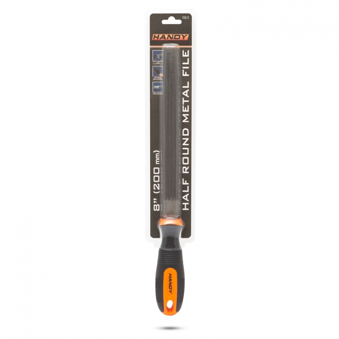 Pila de calitate, 200 mm, cu maner cauciucat. Profil semirotund, dantura incrucisata, ideala pt. prelucrarea metalelor. Manerul ergonomic, cauciucat, asigura comoditate si maxima siguranta in timpul lucrului. Este alegere perfecta si in cazul executarii colturilor interioare rotunde, sau arcuite.