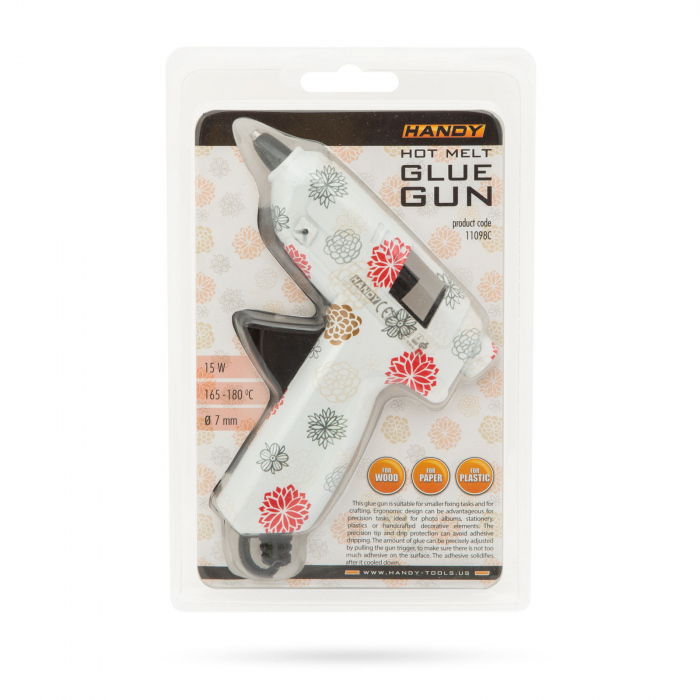 Ideal pt. executarea de lipituri rapide, pt. bricolaj, etc. Executia ergonomica este deosebit de utila la lucrarile de precizie la albume, hârtie si carton, la materialele plastice, sau la lucrarile de decoratiuni self-made. Ajutajul de precizie precum si dispozitivul anti-picurare împiedica scurgerea accidentala a adezivului. Dozarea precisa a adezivului topit se face prin tragaci, ca atare puteti doza cantitatea exact corespunzatoare pe orice suprafata de lipit. Adezivul topit se solidifica dupa racire.
