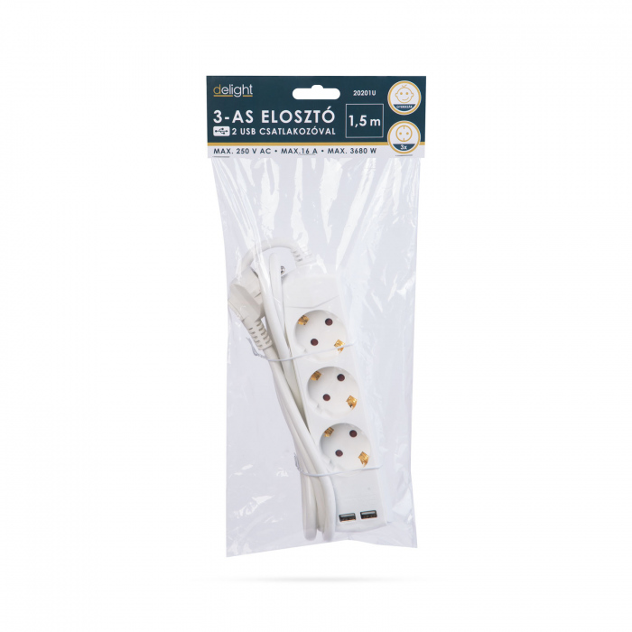 Distribuitor de uz general, recomandat pentru utilizare în gospodarii si birouri. Cu ajutorul celor doua prize USB încorporate îti poti încarca dispozitivele mobile fara adaptoare. Izolatia durabila, de înalta calitate protejeaza cablul de deteriorare si posibila rupere.