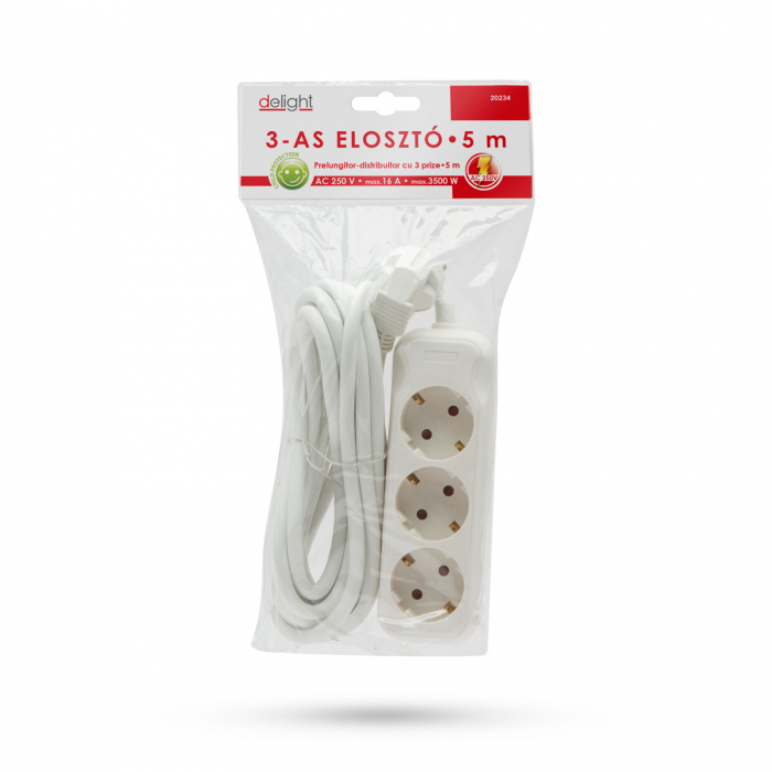 Prelungitor-distribuitor de uz general, recomandat pt. uz casnic, sau de birou. Izolatia solida de calitate protejeaza cablul de eventualele vatamari.