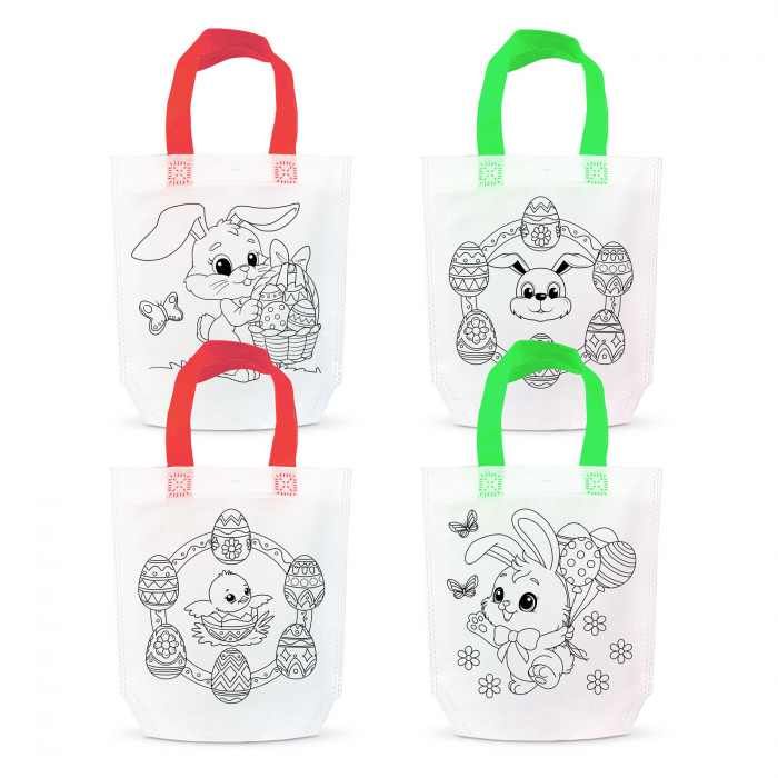 Aceasta geanta cadou colorabila, cu dimensiunile de 24 x 22 cm, este ideala pentru copii si include 4 markere colorate. Fabricata din material PET (netesut), ofera 4 modele cu tema de Paste, combinând utilitatea unei genti cu o activitate creativa. Pentru colorare, se recomanda introducerea unui carton gros între cele doua straturi ale gentii pentru a preveni scurgerea culorilor. Perfecta pentru decorarea locuintei în perioada Pastelui.