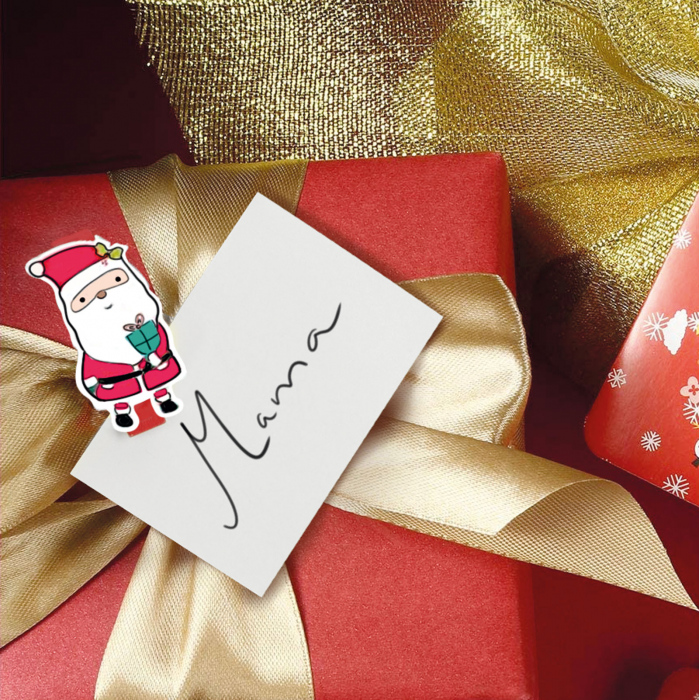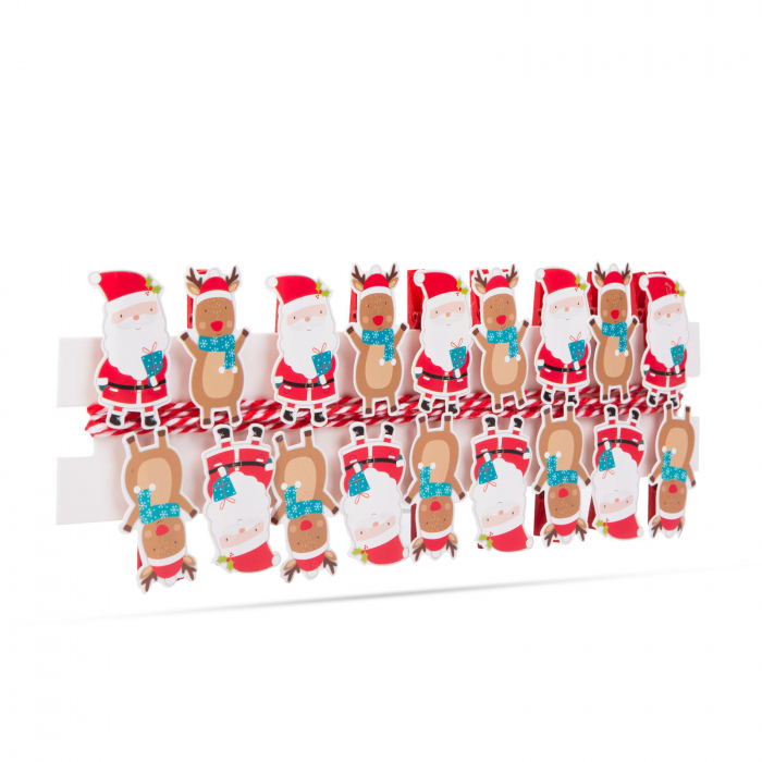 Decoreaza-ti casa folosind cleme si panglici vesele pentru figuri de Mos Craciun. Clema mica, dar puternica, din lemn, poate fi folosita pentru orice.Le poti folosi pentru a atasa diverse decoratiuni de perdele sau chiar la cadouri folosind banda inclusa în pachet.