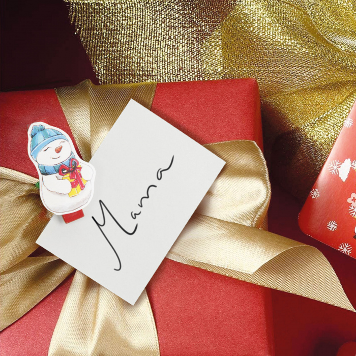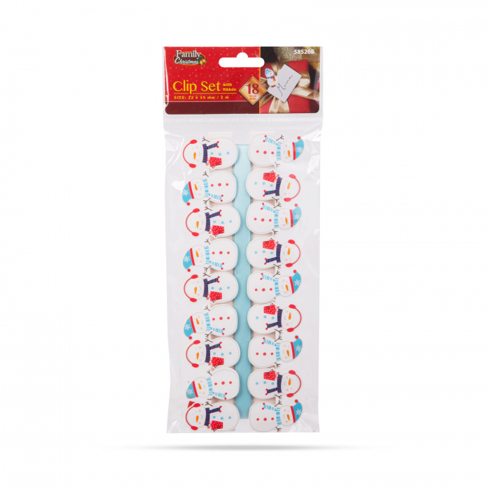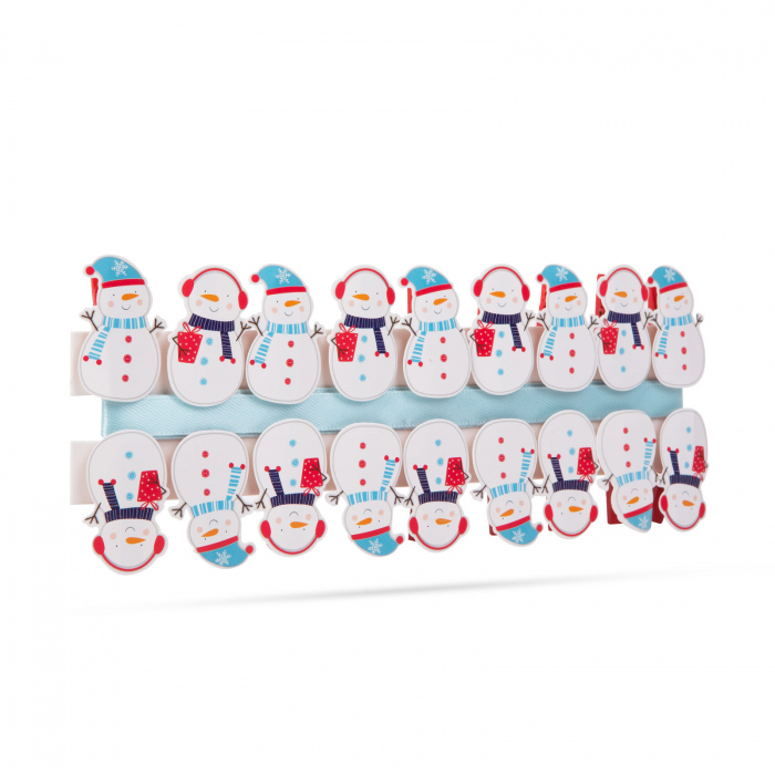 Decoreaza-ti casa folosind cleme si panglici vesele pentru figuri de Mos Craciun. Clema mica, dar puternica, din lemn, poate fi folosita pentru orice sarcina pe care altfel ar suporta-o clemele mari. Le poti folosi pentru a atasa diverse decoratiuni de perdele sau chiar la cadouri folosind banda inclusa în pachet.
