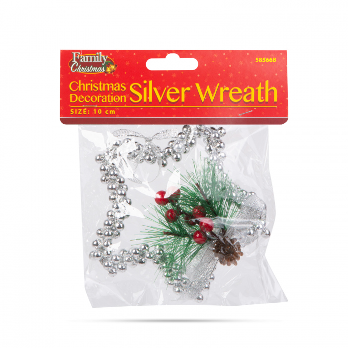 Cu aceasta stea argintie, stralucitaore, îti poti decora cu usurinta casa în timpul sezonului de Craciun! O poti agata cu usurinta în locul dorit cu sfoara din argint. Este potrivit ca decor de brad, dar si ca decor de usa sau in orice alt loc. Fructele de padure rosii viu colorate, o fundita argintie si ramurile si conurile verzi fac ca decorul sa fie cu adevarat placut. Steaua de Craciun este universala si atemporala, asa ca se armonizeaza perfect cu orice decor si stil decorativ.