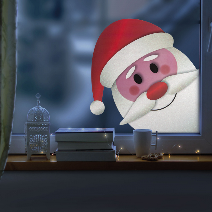 Un decor vesel pentru fereastra de Craciun - va crea o atmosfera de sarbatoare. Poate fi aplicat si îndepartat cu usurinta fara a lasa urme. Unele parti ale autocolantului sunt decorate cu sclipici.