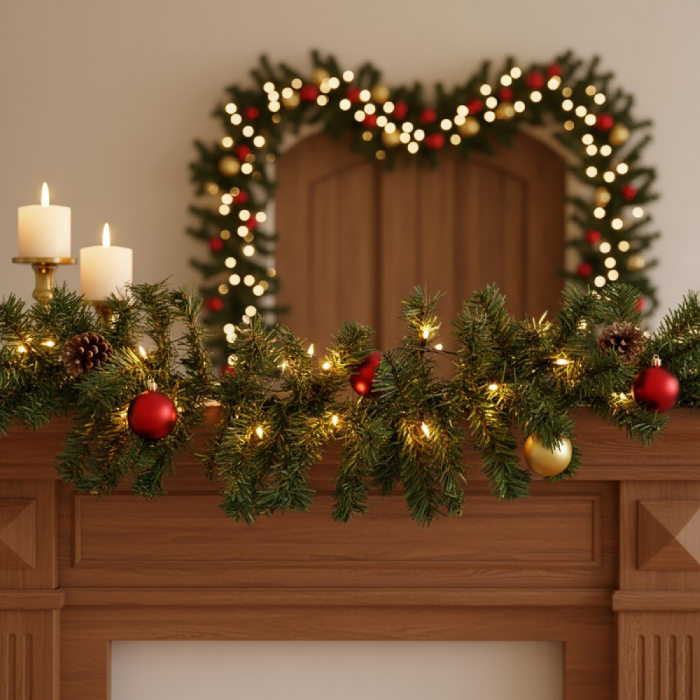 Este ideala pentru împodobirea usilor, balustradelor, semineelor sau pervazurilor, fiind usor de fixat si de modelat dupa preferinte. Durabila si reutilizabila, ghirlanda îsi pastreaza frumusetea si eleganta de la un an la altul.