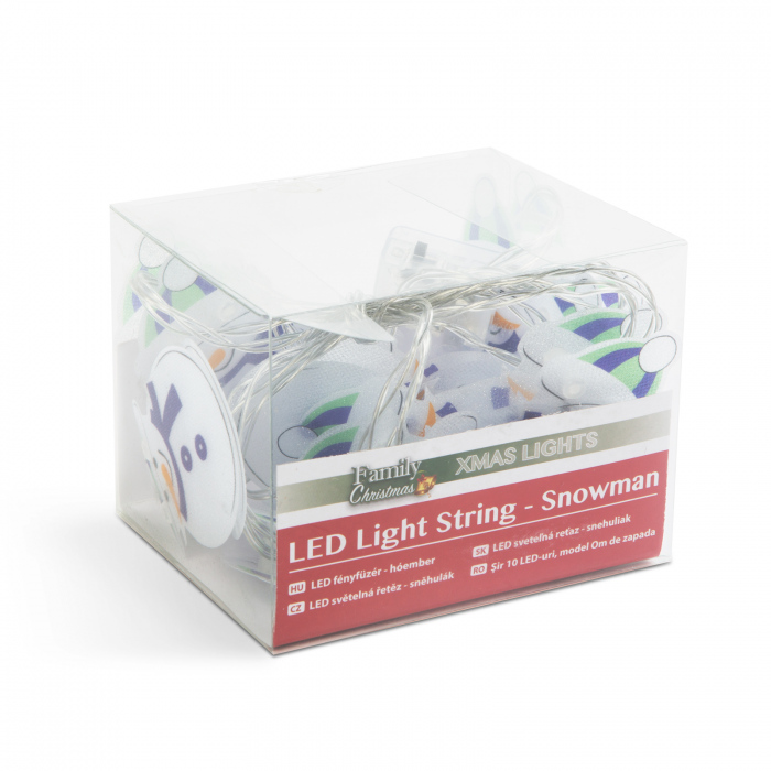 Un sir luminos vesel, om de zapada, care va înveseli instantaneu familia. Oamenii de zapada transparenti sunt iluminati de LED-uri albe, calde, oferind casei tale o experienta vizuala minunata din toate directiile. Poate fi ideal pentru a decora pomi de Craciun, ghirlande, rafturi, coroane si perdele. Datorita consumului redus de energie, aceasta poate fi functiona si cu baterii pentru o perioada lunga de timp.