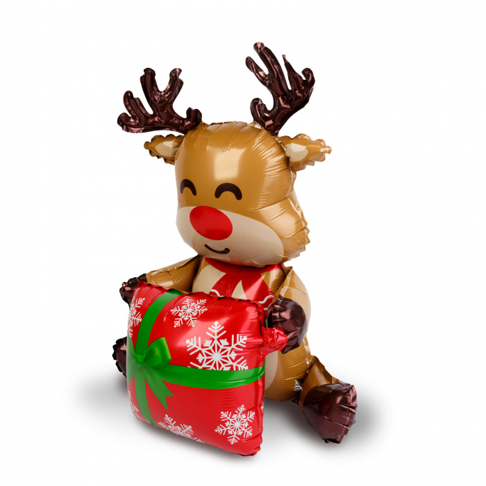 Balonul este confectionat din folie rezistenta, de înalta calitate, si se umfla cu aer (nu este compatibil cu heliu). Datorita materialului durabil, îsi pastreaza forma si culorile stralucitoare pentru o perioada îndelungata. Designul jucaus, cu renul care poarta cadouri, aduce un plus de energie si buna dispozitie oricarui spatiu.