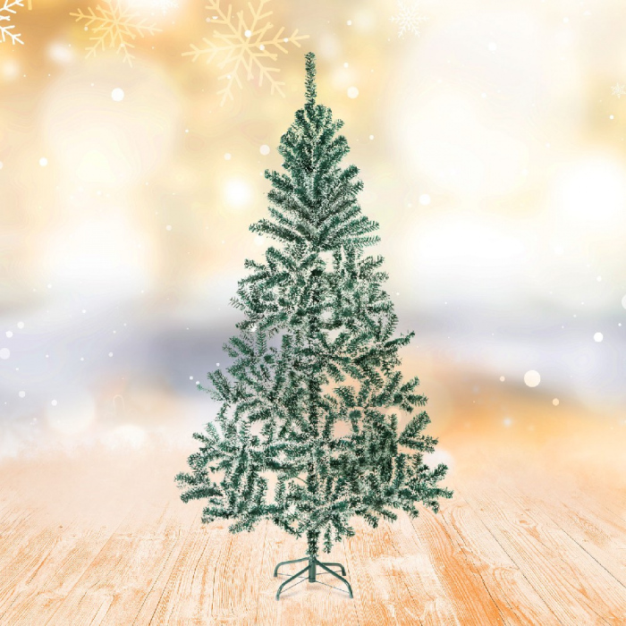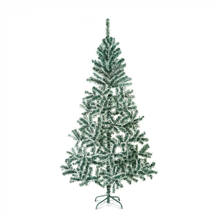 Creeaza un decor festiv plin de farmec cu acest brad artificial de 180 cm, cu aspect înzapezit. Vârfurile ramurilor sunt acoperite cu un strat alb care imita zapada, oferind bradului un aer natural si elegant, perfect pentru a aduce magia iernii în casa ta.