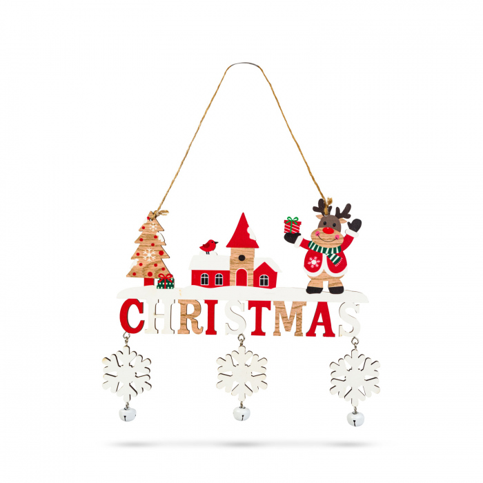 Adauga o nota calda si rustica decorului tau festiv cu aceasta decoratiune din lemn, prevazuta cu clopotei si detalii de sezon. Disponibila în doua modele diferite — unul cu ren si inscriptia „Christmas”, iar celalalt cu om de zapada si textul „Let It Snow” — aceasta piesa aduce farmecul iernii în orice încapere.
