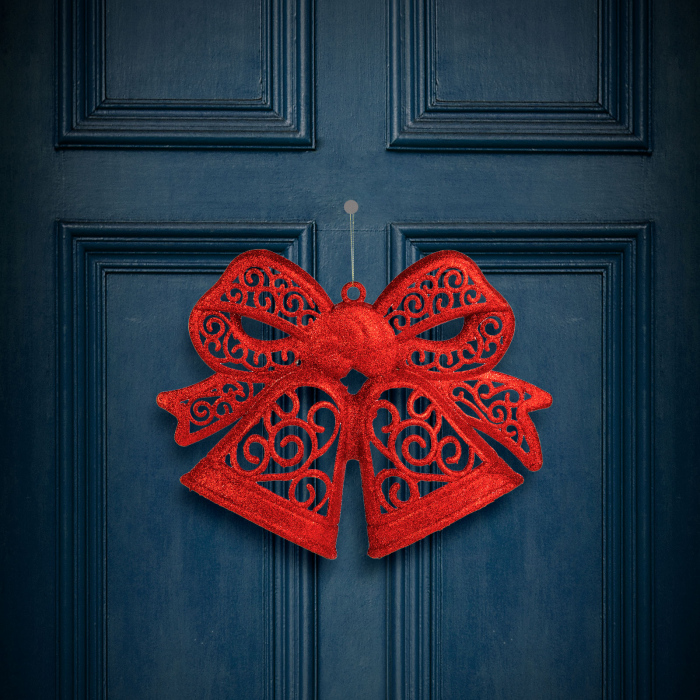 Adauga o nota eleganta si stralucitoare decorului tau de sarbatoare cu aceasta funda decorativa de mari dimensiuni. Realizata din material plastic rezistent, cu finisaj glitter rosu intens, fundita este ideala pentru împodobirea bradului, a usilor, ferestrelor sau a spatiilor comerciale.