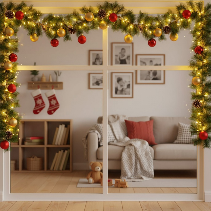 Poate fi folosita pentru a împodobi usi, balustrade, seminee sau pervazuri, adaugând un plus de eleganta si caldura. Datorita materialului durabil, ghirlanda îsi pastreaza frumusetea an de an si este usor de fixat si de modelat în functie de preferinte.
