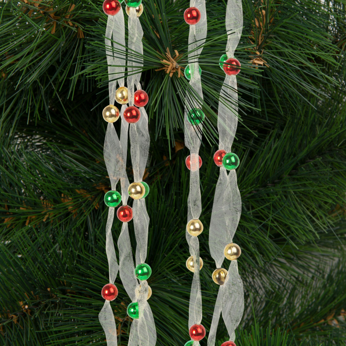 Decoreaza-ti casa si bradul de Craciun cu aceasta ghirlanda. Margelele stralucitoare de pe panglica din organza creeaza o atmosfera intima în casa ta. Ghirlanda lunga de 2,7 metri arata bine si pe pomii mari de Craciun.