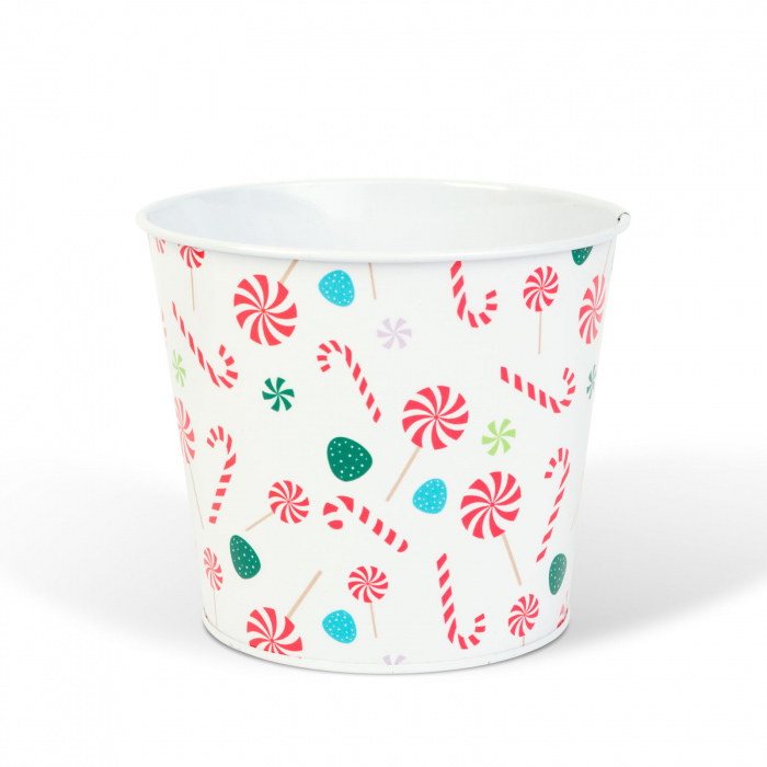 Ghiveci decorativ din metal, model bastonas de zahar