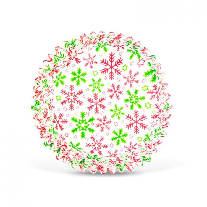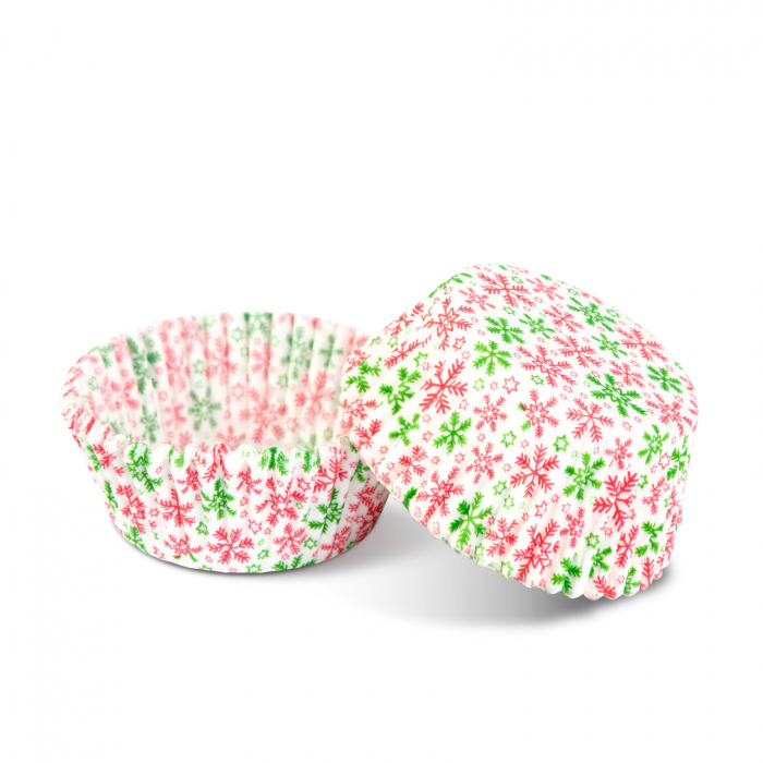 Fiecare set contine 40 de forme din hârtie rezistenta, decorate cu doua modele tematice – Mos Craciun sau fulg de zapada. Sunt compatibile cu toate tipurile de forme standard pentru briose si rezista la temperaturi ridicate.