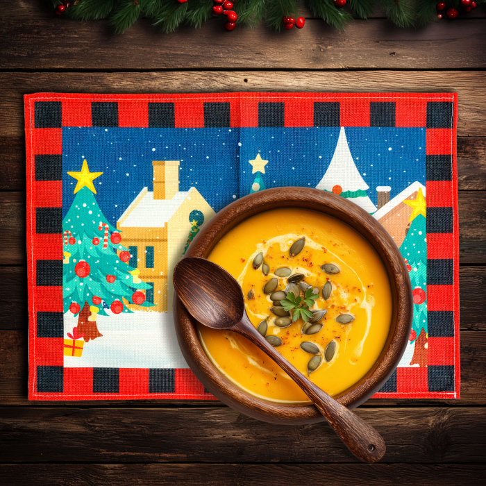 Fabricat din poliester rezistent, suportul este moale, usor de curatat si reutilizabil. Dimensiunea generoasa îl face potrivit pentru orice tip de masa, fie ea rotunda sau dreptunghiulara. Ideal pentru mesele festive, dar si pentru utilizarea zilnica în perioada rece, aducând un strop de bucurie si eleganta în fiecare încapere.