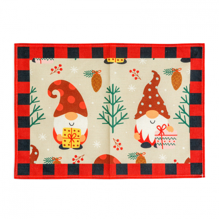 Realizat din poliester rezistent, este usor de curatat si reutilizabil, potrivit pentru utilizare zilnica sau ocazii speciale. Modelul cu imprimeu rosu/negru în carouri si ilustratia de spiridus ofera un aspect cald, de inspiratie nordica, perfect pentru a crea o atmosfera prietenoasa si plina de farmec.