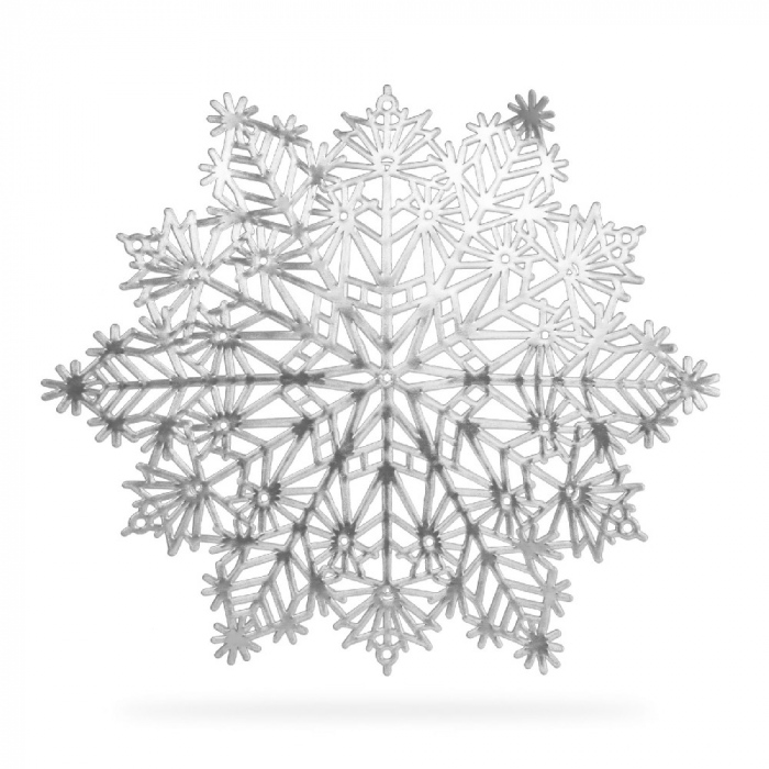 Fabricat din PVC rezistent si antiderapant, ofera stabilitate si siguranta la utilizare. Designul sau în forma de fulg de nea, cu suprafata lucioasa, îl transforma într-un element decorativ ideal pentru mesele de Craciun si pentru întreaga perioada de iarna.