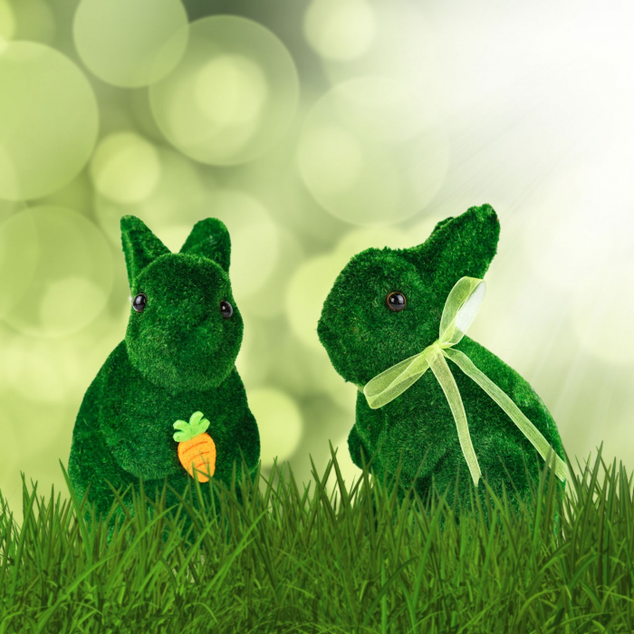 Cu acest frumos iepuras de Paste, poti crea cu usurinta o atmosfera unica în casa ta. Suprafata de plus care seamana cu iarba artificiala ridica decorul festiv la un nivel superior. Dimensiunea compacta a iepurasului permite plasarea usoara pe orice dulap, raft sau în centrul mesei de Paste.