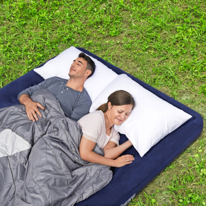 Salteaua acoperita velour din material rezistent iti permite sa obtii un somn binemeritat, oriunde te-ai afla. Orificiile de pe suprafata saltelei, designul COIL BEAM, sunt responsabile pentru rezistenta, flexibilitatea, stabilitatea si confortul saltelei. Întariturile verticale interne permit distribuirea uniforma a presiunii aerului si a fortelor care actioneaza pe suprafata saltelei. Drept urmare, ofera un suport flexibil, dar stabil în timpul somnului.
