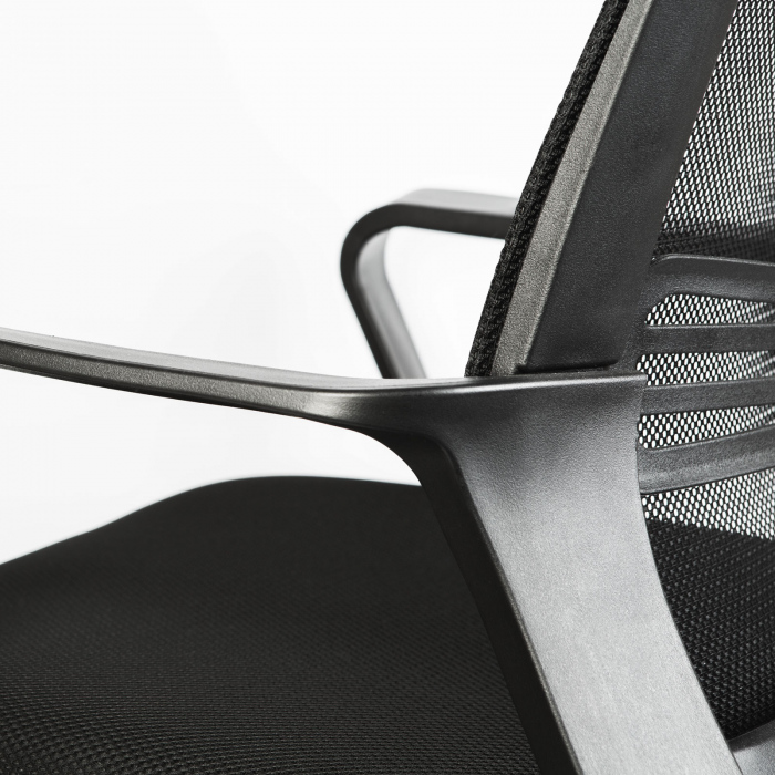 Scaunul de birou BMD1119B este solutia ideala pentru un spatiu de lucru eficient si modern. Cu un design ergonomic complet negru, ofera suport optim în timpul sederii prelungite, atât la birou, cât si acasa. Spatarul din material tip mesh este flexibil si permite o buna circulatie a aerului, în timp ce sezutul este realizat din burete moale pe structura de lemn stratificat. Bratele fixe adauga stabilitate, iar sistemul de reglare a înaltimii cu gazlift si baza metalica cu roti asigura o experienta sigura si practica în utilizarea de zi cu zi.