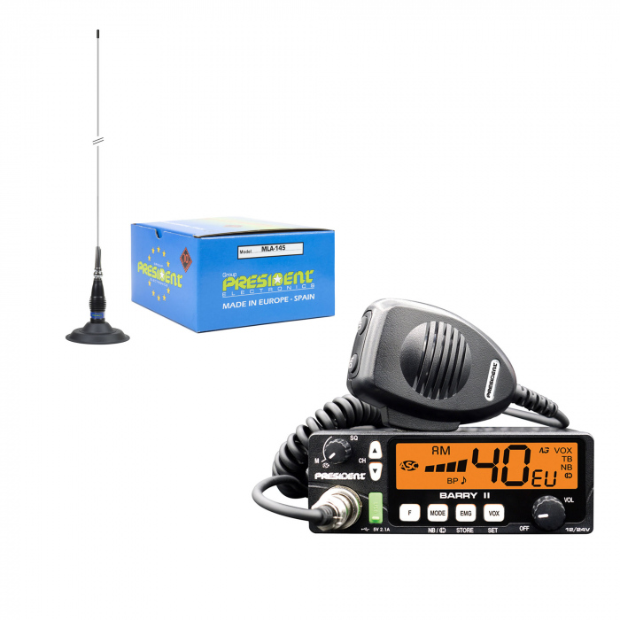 Statie radio CB President BARRY II cu antena CB President MLA-14
