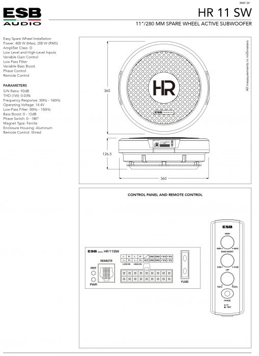 Subwooferul auto ESB HR 11 SW este soluția perfectă pentru cei care doresc să adauge un bass puternic sistemului audio al mașinii, fără a sacrifica spațiul din portbagaj. Acesta se instalează ușor în locul roții de rezervă. Carcasa din aluminiu turnat îl face robust și durabil.