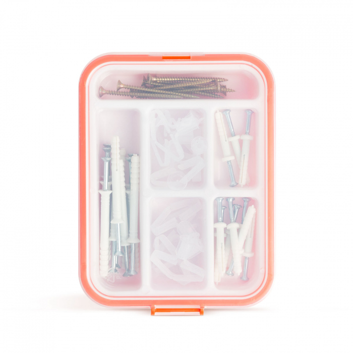 Si dvs. sunteti amator de bricolaj? Sau va limitati numai la operatiile strict necesare în casa? Acest set de suruburi nu va va dezamagi. Piesele se pot folosi pentru fixare pe orice tip de perete, pentru tablouri, rafturi, console. Caseta cu capac transparent ofera vizibilitate perfecta asupra continutului.