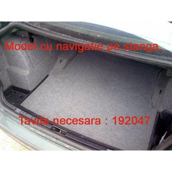 Observatii: tavita de portbagaj prezentata se potriveste pentru modelele auto BMW Seria 3 E46 de dupa facelift, dar si pentru cele dinainte de facelift, dar care au sistem audio si/sau navigatie pe stanga in portbagaj si necesita o degajare spre bancheta. Vedeti imaginile.