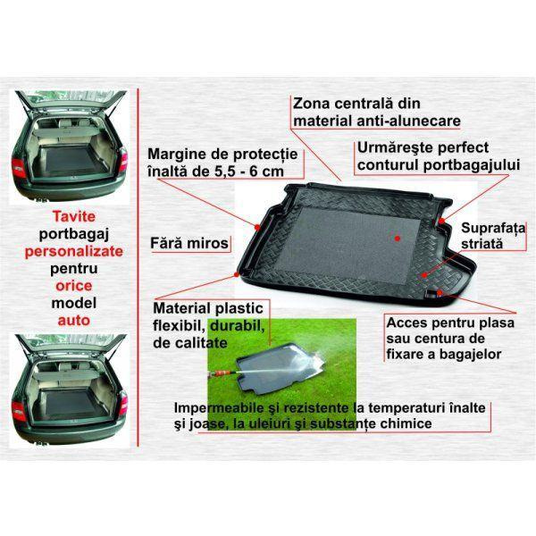 Observatii: tavita de portbagaj prezentata se potriveste pentru modelele Mitsubishi Outlander cu 7 locuri - randul 3 culcat (nu pentru modelul cu 5 locuri) ce au sau nu au subwoofer in parte stanga, cu portbagaj superior. Practic podeaua portbagajului este pozitionata la acelasi nivel cu pragul de incarcare/ bara spate
