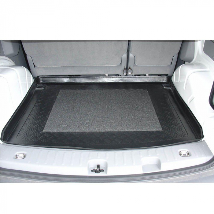 Observatii: tavita de portbagaj prezentata se potriveste pentru modelele Vw Caddy fara acoperitori capitonate sau de plastic peste pasajele rotilor din spate (se vede tabla pasajului rotii)