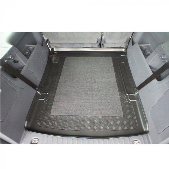 Observatii: tavita de portbagaj prezentata se potriveste pentru modelele Vw Caddy Maxy ce au ampatament lung (3002 mm), modele cu 5 sau 7locuri (ultimul rand scos din masina),in general echipare Trendline, Comfortline, Highline cu capitonaj al pasajelor rotilor spate- vedeti poza (pasajele rotilor sunt acoperite)