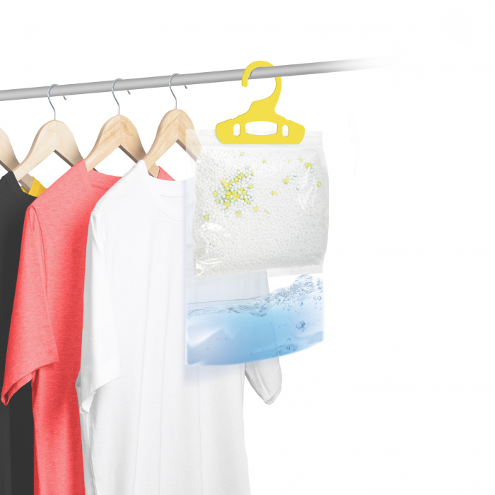Pentru un aer sanatos si proaspat în apartamentul nostru si pentru a evita mucegaiul, trebuie sa reglam temperatura si umiditatea. Acest produs ofera un ajutor excelent în ceea ce priveste aceasta din urma, care colecteaza umezeala din aerul din camera cu ajutorul pernei din pachet în locurile umede. Datorita agatatoarei, poate fi plasat chiar si într-un dulap sau în baie, împiedicând astfel ca hainele sa devina mucegaite.