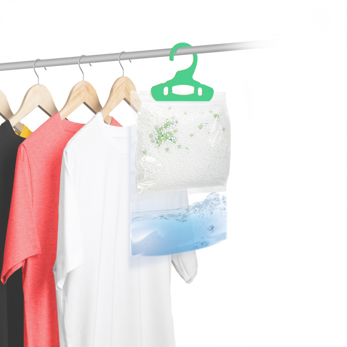Pentru un aer sanatos, proaspat în apartamentul nostru si pentru a evita mucegaiul, trebuie sa reglam temperatura si umiditatea. Acest produs ofera un ajutor excelent în cel din urma, care colecteaza umiditatea din aerul camerei cu ajutorul tabletei din ambalaj în locurile umede. Datorita cuierului sau practic, poate fi asezat chiar si intr-un dulap sau in baie, prevenind astfel ca hainele sa se mucegeasca.