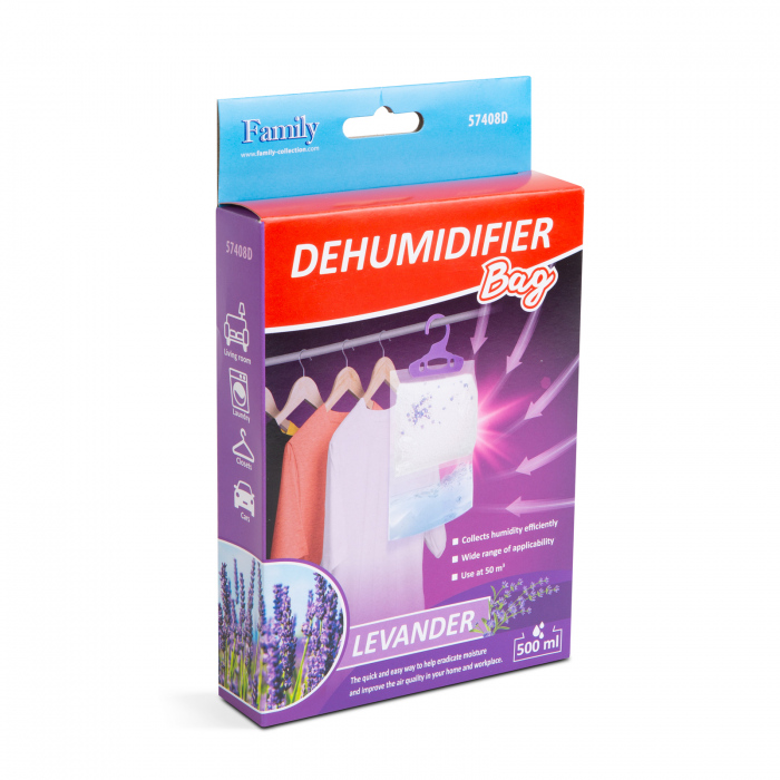Pentru un aer sanatos si proaspat în apartamentul nostru si pentru a evita mucegaiul, trebuie sa reglam temperatura si umiditatea. Acest produs ofera un ajutor excelent în ceea ce priveste aceasta din urma, care colecteaza umezeala din aerul din camera cu ajutorul pernei din pachet în locurile umede. Datorita agatatoarei, poate fi plasat chiar si într-un dulap sau în baie, împiedicând astfel ca hainele sa devina mucegaite.