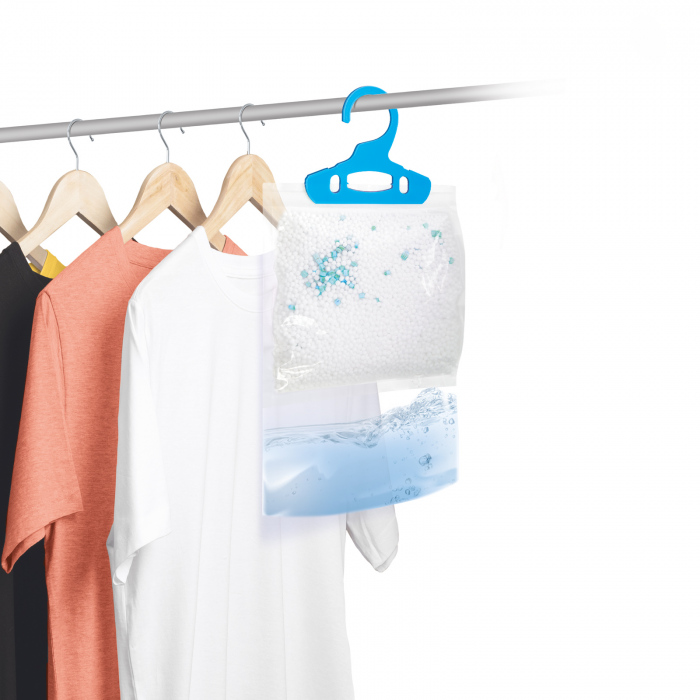 Pentru un aer sanatos si proaspat în apartamentul nostru si pentru a evita mucegaiul, trebuie sa reglam temperatura si umiditatea. Acest produs ofera un ajutor excelent în ceea ce priveste aceasta din urma, care colecteaza umezeala din aerul din camera cu ajutorul pernei din pachet în locurile umede. Datorita agatatoarei, poate fi plasat chiar si într-un dulap sau în baie, împiedicând astfel ca hainele sa devina mucegaite.