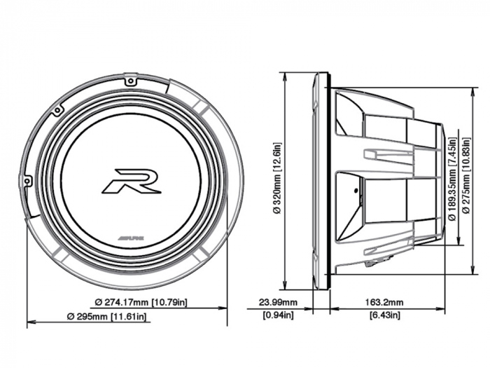 • Dimensiuni – Noile subwoofere din seria R sunt disponibile în configurații de dimensiuni de 8”, 10” si 12” și vin în impedanțe duble de 2Ω și 4Ω.