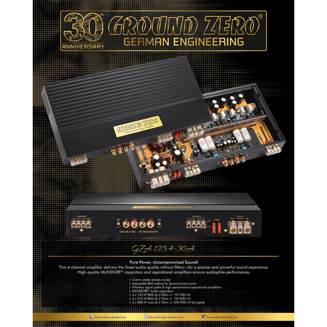 Amplificator SQ de înaltă calitate pe 4 canale, Clasa A/B, Serie aniversara - Editie limitata