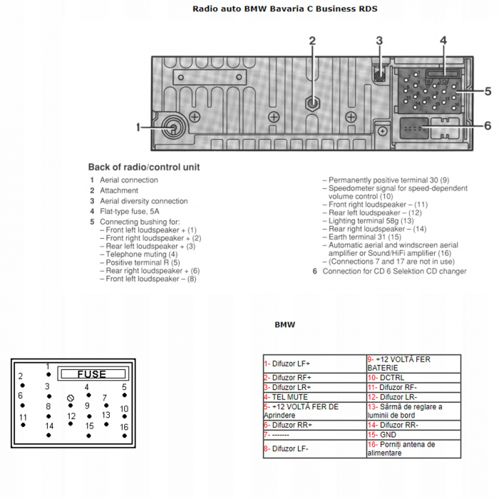 Conector ISO cu pini rotunzi pentru Bmw Seria 3/5/7/X5/Z3/Z8/Mini ( 1987-2006 )