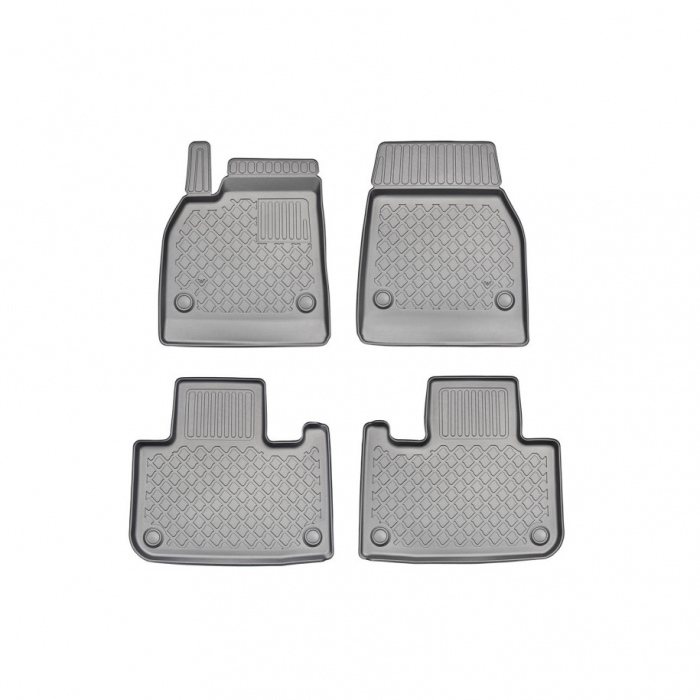 Materialul covoraselor gen tavita cu margini inalte pentru Tesla Model Y Juniper nu este cauciuc obisnuit, ci un cauciuc artificial intarit, un polimer (reinforced thermoplastic elastomer) care combina avantajele cauciucului cu cele ale plasticului de inalta rezistenta si durabilitate.