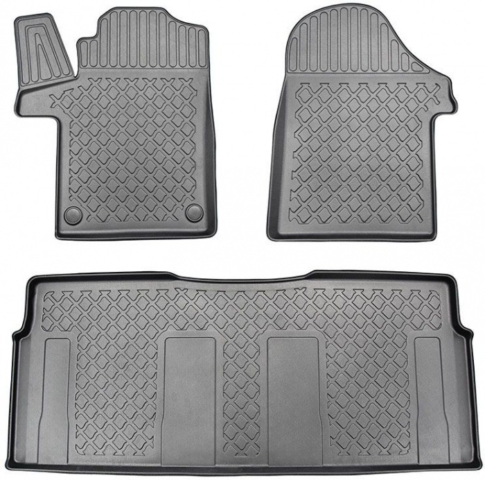 In poze este modelul cu doua locuri in fata, dar covorasele sunt la fel si la modelele cu 3 locuri pe primul rand.