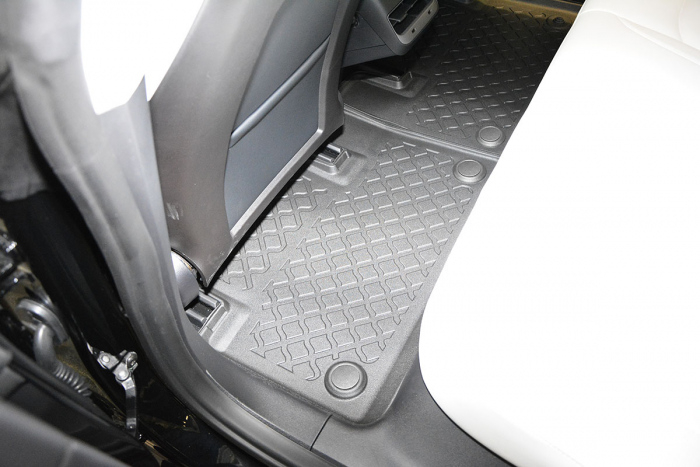 Materialul covoraselor tip tavita pentru Tesla Model 3 similar celui din care sunt produse tavitele pentru portbagaj Premium Cool Liner™, dar ceva mai gros. Nu este un cauciuc obisnuit, ci un cauciuc artificial intarit, un polimer (reinforced thermoplastic elastomer) care combina avantajele cauciucului cu cele ale plasticului de inalta rezistenta si durabilitate.